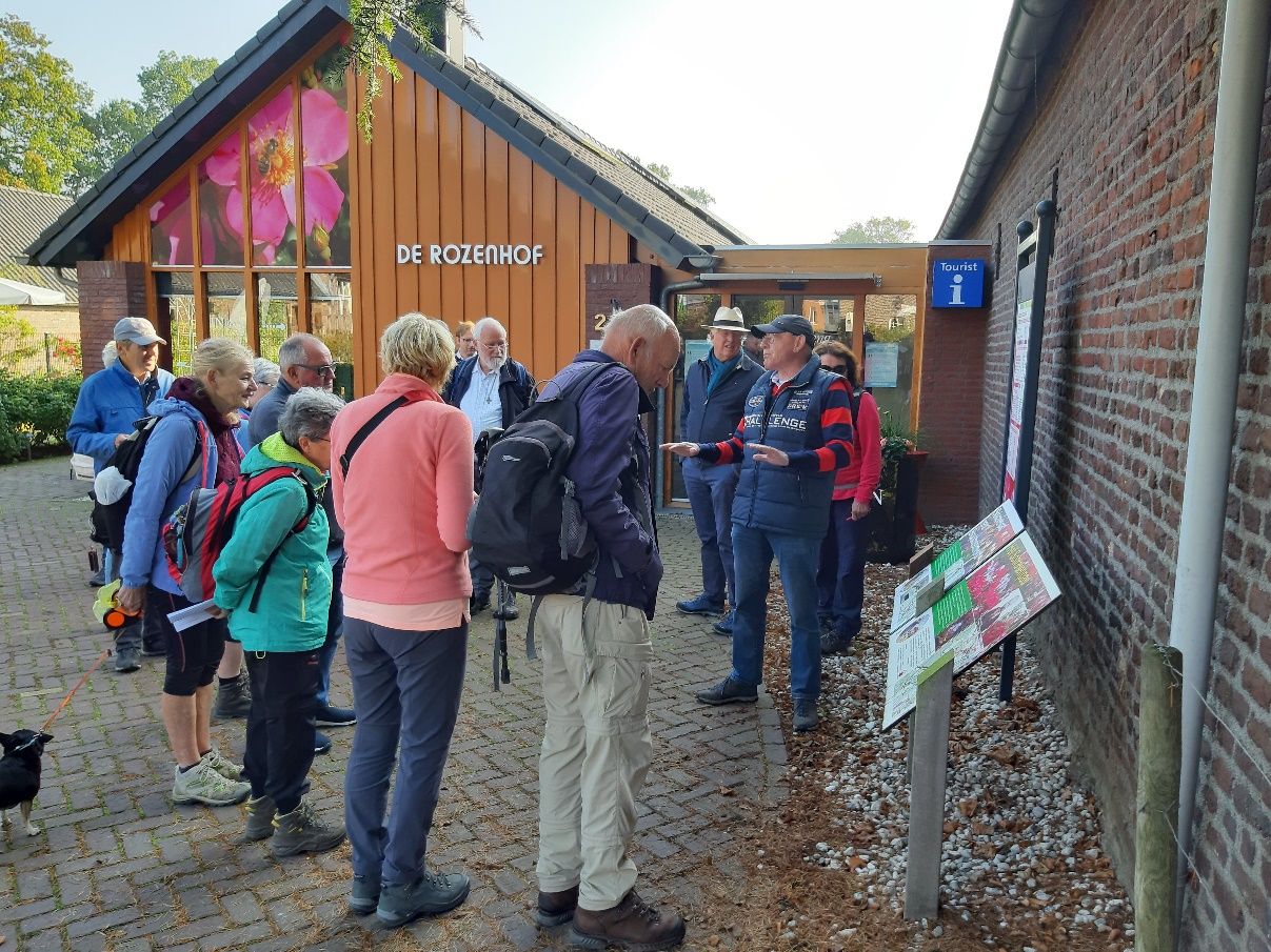 Mia Janssen-Brouwer, bestuurslid van de Mgr. Schraven Stichting, begeleidt de wandelaars met momenten van bezinning. Zij heeft gekozen voor het thema van de wandeling “Ontsteek de lamp van de liefde met je leven” (Tagore). In haar toelichting in de korte folder over de wandeling van bezinning is opgenomen: “Vandaag gaan we samen op weg. We lopen in de natuur, met beide benen stevig op de grond, in verbondenheid met anderen, met open ogen, met open oren, met een ontvankelijk hart. We kennen allemaal het verhaal van de man die op weg was van Jeruzalem naar Jericho en overvallen werd door de rovers en Jezus vraagt wie de naaste is geworden van deze man. De les voor ons is dat het vertrekpunt bij de ander ligt die in nood is en een beroep op ons doet. Verhalen zijn belangrijk, fungeren als een spiegel, kunnen de richting aangeven die wij zouden moeten gaan. Het verhaal van Mgr. Schraven en zijn Gezellen is daar een duidelijk voorbeeld van. Roger Burggraeve, moraaltheoloog uit België, zegt het volgende: “Wie leeft en handelt In het spoor van Jezus van Nazareth is een mens die op twee benen loopt, namelijk de waarachtigheid en de gerechtigheid. Nooit staat hij stil, steeds is hij in beweging. Nu eens gaat zijn stap in de richting van de barmhartigheid dan weer de richting van de gerechtigheid, zonder een van beide uit te sluiten”.