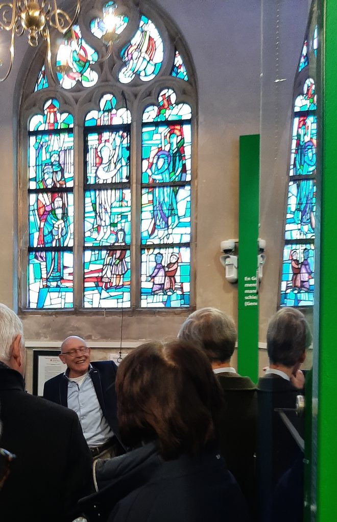 Na deze hartversterking gaf onze voorzitter Harry Schraven een lezing over bisschop Frans Schraven met een rondleiding door de martelarenkapel.