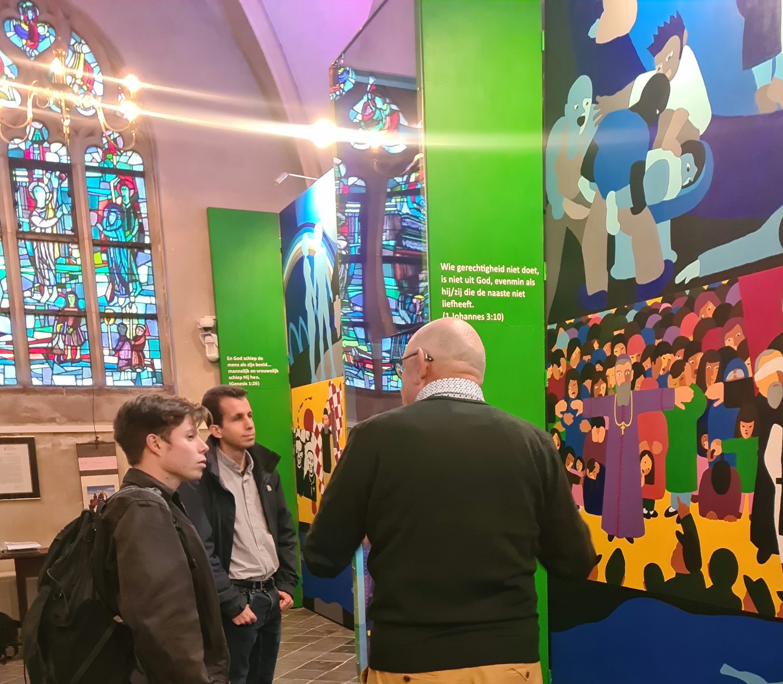 Op 11 oktober 2025 gaven de voorzitter en de secretaris van de Mgr. Schraven Stichting een rondleiding in de Mgr. Schraven kapel te Broekhuizenvorst aan Zeger Polhuijs, priester van de Gemeenschap van Sant’Egidio Antwerpen & Amsterdam en Daan Savert, student theologie. Hij volgt de onderzoeks master ‘Peace, Trauma & Religion’ en is actief voor het Christion Peace Maker Team. Het doel van de Gemeenschap van Sant’Egidio is samenkomen in gebed, vriendschap met mensen in kwetsbare situaties; inzet voor vrede, dichtbij en wereldwijd en een reflectie op de invloed van globalisering op ons samenleven. Het Christian Peacemaker Team (CPT) is een internationale vredesorganisatie die geweldloze teams stuurt naar conflictgebieden om lokale vreedzame gemeenschappen te ondersteunen en mensenrechten te verdedigen. De rondleiding was een gemoedelijke en wederzijds leerzame ontmoeting.