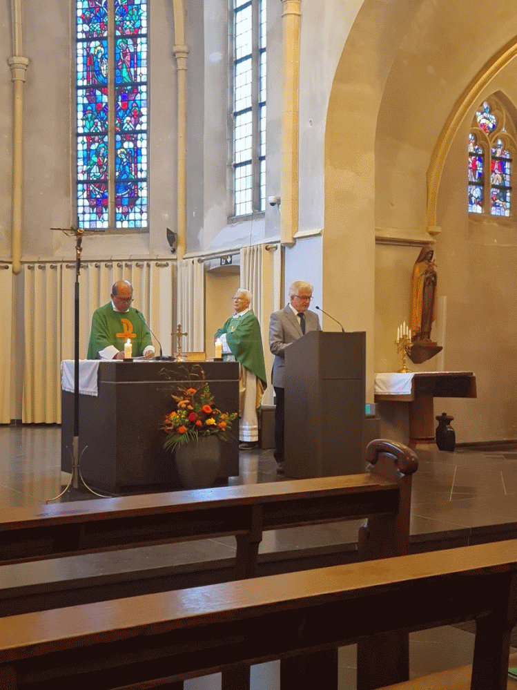 PP-presentatie van de (lied)teksten door Piet Litjens en last but not least de actieve deelname van alle aanwezigen in bidden en zingen. Zo kon de viering van de Eucharistie, het hoogtepunt van ons geloof, door allen echt gedragen en intens beleefd worden!!