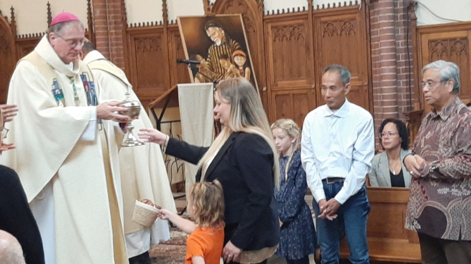 De intenties van de Voorbede werden door meerdere lectoren in verschillende talen voorgelezen. In het mooi verzorgde liturgieboekje konden wij de vertaling ervan meelezen.