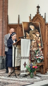 Op het einde van de prachtige viering, vóór de pontificale zegen, vertelden Zuster Liesbeth Rapwasi, overste van de zusters Onder de Bogen te Maastricht (officiële naam: Liefdezusters van de H. Carolus Borromeus) en frater Broer Heitema van de Fraters van Liefde te Tilburg hoe zij zich in hun werk in de zorg en het onderwijs baseren op de spiritualiteit en de directe manier van noodleniging van de H. Vincentius.