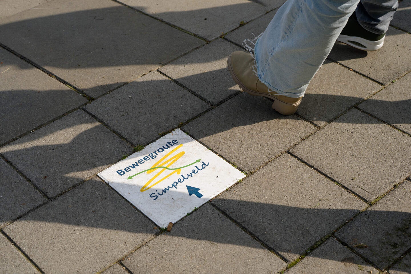 Deze stoeptegels wijzen de weg van de beweegroute van Simpelveld. © Rob Oostwegel